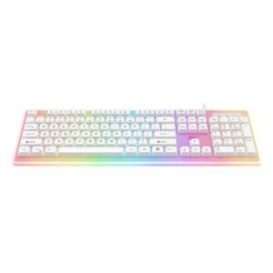 মূল বৈশিষ্ট্য: ✅ লাইট টাইপ: RGB ✅ ইন্টারফেস: USB ✅ কী সংখ্যা: 104 ✅ সাইজ: 443 × 141 × 30 মিমি ✅ অপারেটিং ভোল্টেজ: 5V ±0.5 V ✅ অপারেটিং কারেন্ট: 300 mA ✅ কী লাইফ: 8,000,000 বার ✅ কেবল দৈর্ঘ্য: 1.5 মি ±10% ✅ ওজন: 520g ✅ মাল্টি-ফাংশন কীবোর্ড: ব্যাকলিট RGB লাইট সহ ✅ দীর্ঘস্থায়ী ও টেকসই: স্টাইলিশ ও শক্তপোক্ত ডিজাইন
